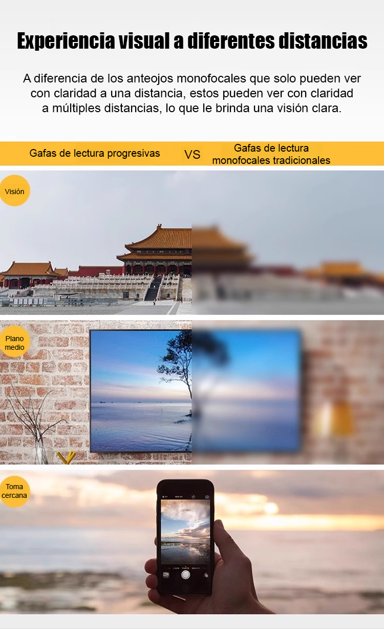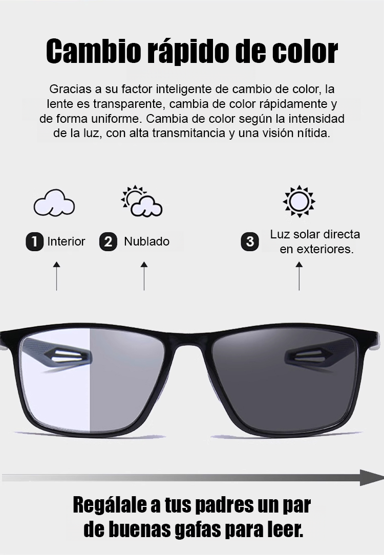 Nuevas gafas progresivas antideslumbrantes con protección contra la luz azul y lentes que cambian de
